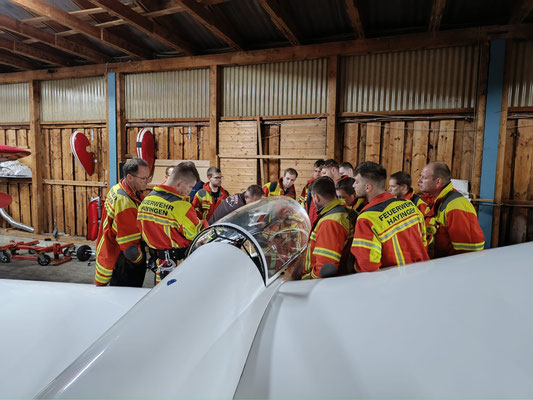 bei Segelflugzeugen. Auch unsere Gebäude wurden besichtigt, inklusive Hinweisen zur Stromversorgung, Wasseranschluss und Lagerung von Gefahrstoffen.
