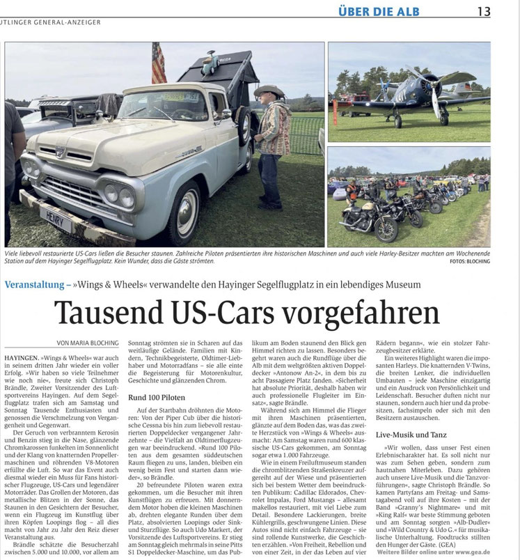 Wings & Wheels begeistert auf dem Hayinger Segelflugplatz - Über die Alb - Reutlinger General-Anzeiger - gea.de